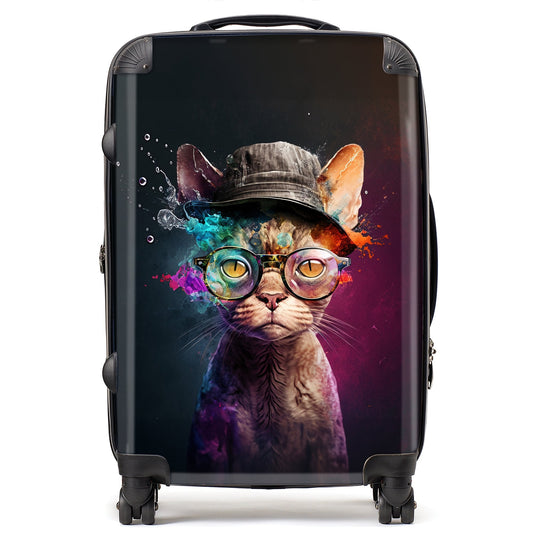 Devon Rex Cat With Hat Splashart Suitcase