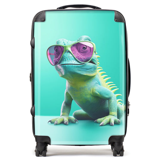 Happy Splashart Iguana Wearing Glasses Suitcase